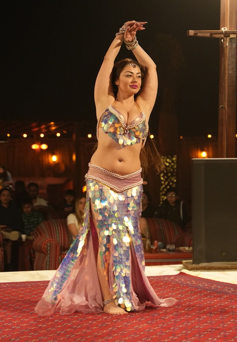 • BBQ Dinner & Live Entertainment: Indulge in a mouthwatering BBQ buffet dinner with both vegetarian and non-vegetarian options, followed by mesmerizing live entertainment, including a belly dance performance, Tanoura dance, and a fire show.
